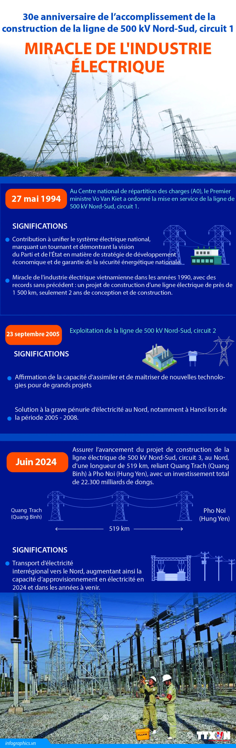 La ligne de 500 kV Nord-Sud, circuit 1, contribue à unifier le système électrique national, marquant un tournant et démontrant la vision du Parti et de l'État en matière de stratégie de développement économique et de garantie de la sécurité énergétique nationale.