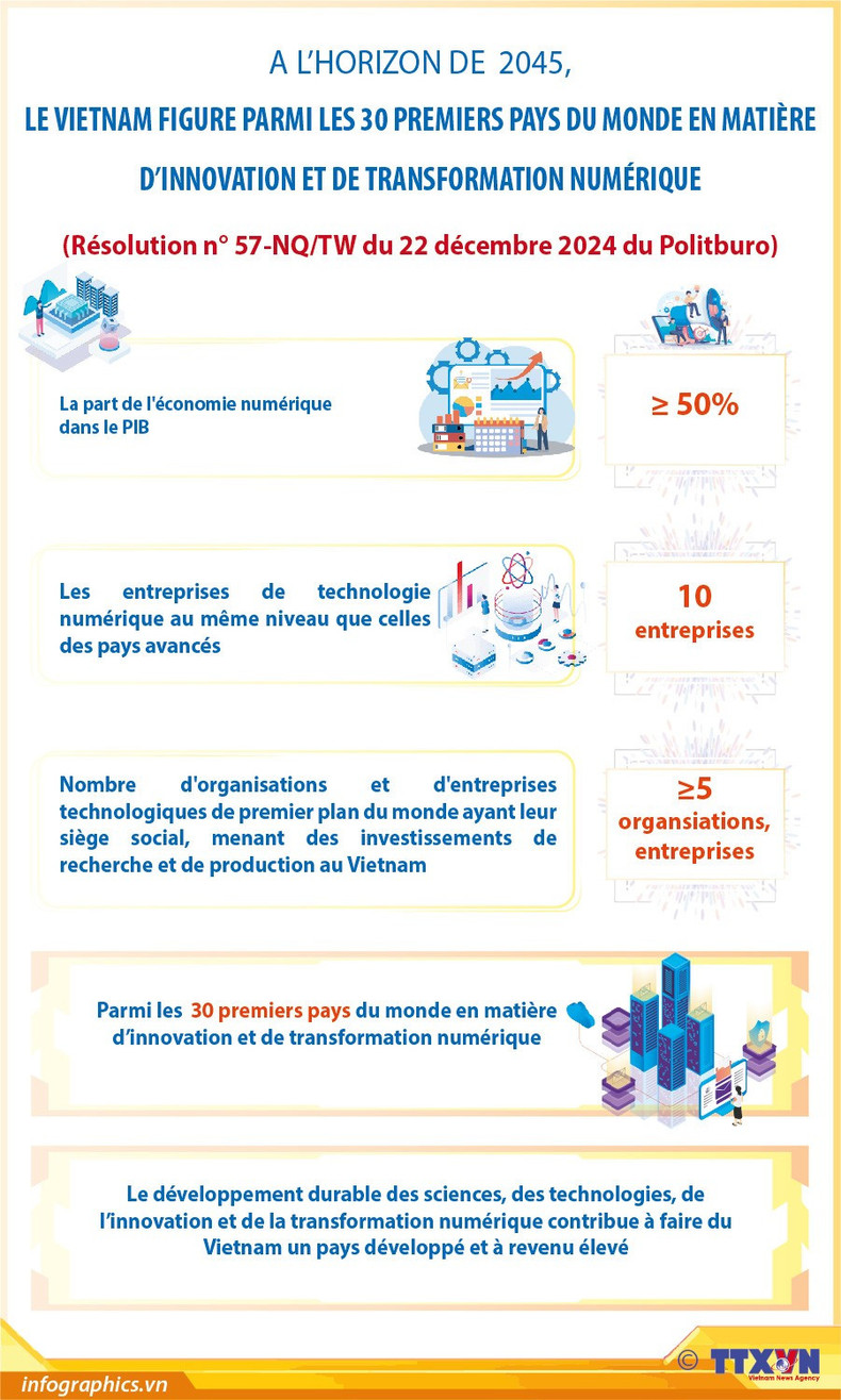 A l'horizon de 2045, le Vietnam figure parmi les 30 premiers pays du monde en matière d’innovation et de transformation numérique