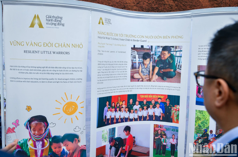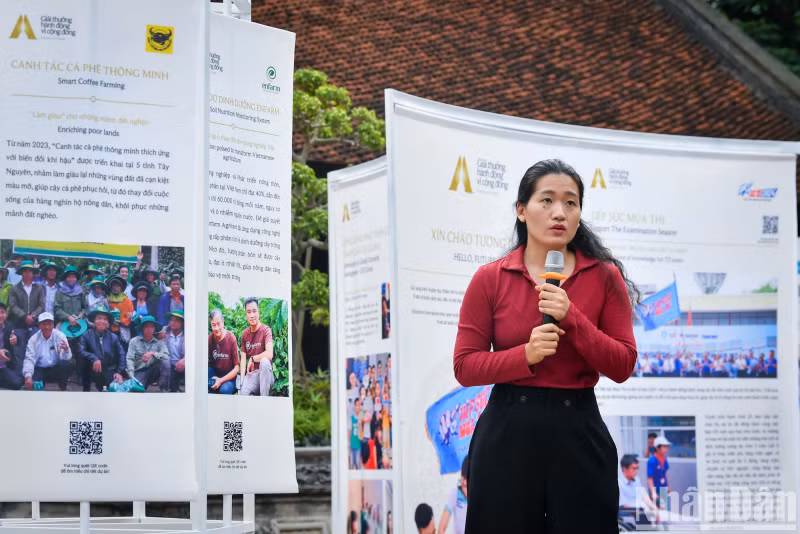 | Dang Thi Thuong, directrice du Human Act Prize, a présenté l'espace d'exposition. Photo : nhandan.vn |
