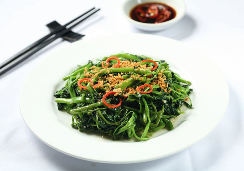 Épinards d’eau sautés à l’ail (Rau muống xào tỏi)