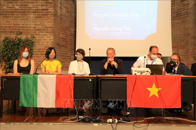 L’ambassadrice du Vietnam en Italie, Nguyên Thi Bich Huê (2e, à gauche), prend sa parole. Photo : VNA.