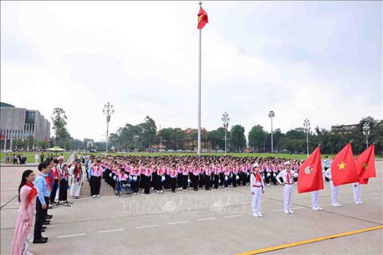 Le matin du 14 mai, la délégation des "enfants sages de l’Oncle Ho" a présenté ses réalisations avant de lui rendre hommage au mausolée.