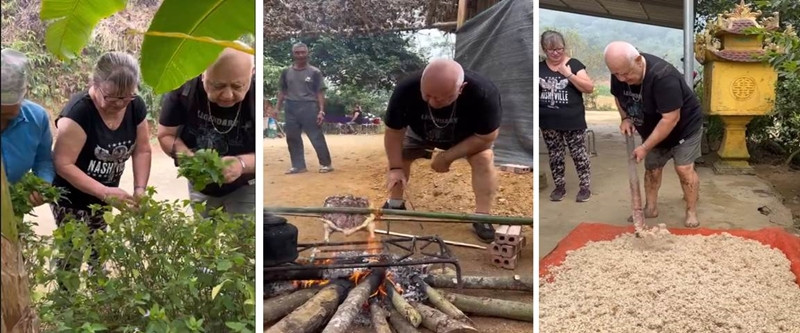 Tout au long de leur séjour, le couple a participé à des activités quotidiennes comme cueillir des feuilles pour obtenir du riz gluant coloré, griller du poulet et préparer du riz fermenté pour la distillation.