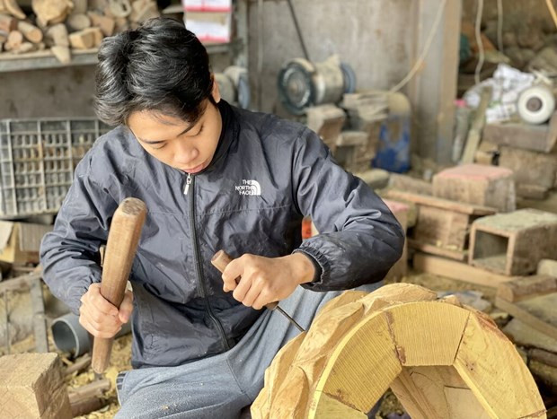Nguyên Van Sên, 20 ans, souhaite avoir son propre atelier de sculpture. Photo : CVN/VNA.