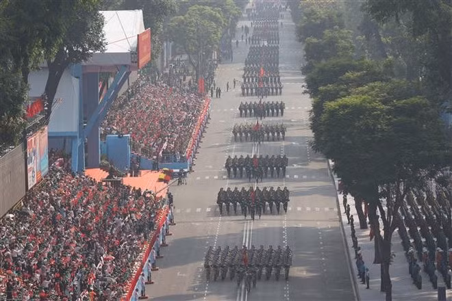 Les blocs de parade des forces armées ont défilé en formation stricte devant la tribune, démontrant la force, la discipline et le professionnalisme de l'Armée populaire du Vietnam.
