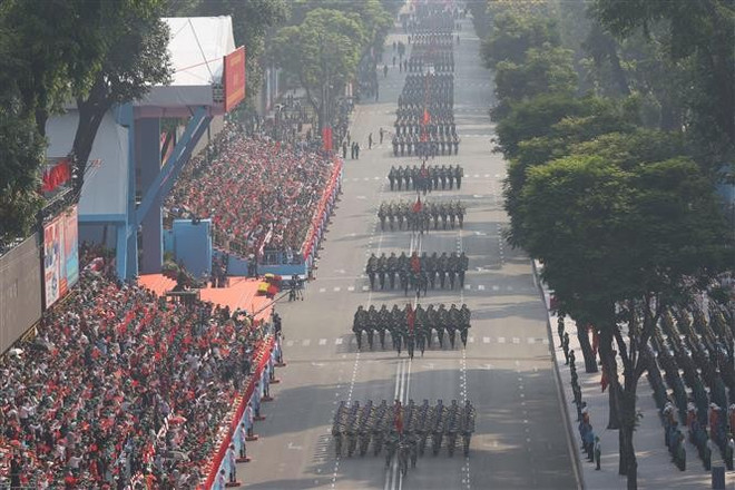 Parmi les invités figuraient des officiers représentant les cinq colonnes entrées à Saigon pendant la campagne historique de Hô Chi Minh, ainsi que des troupes d'infanterie, de marine, de défense aérienne, de frontière, des forces spéciales, de cybernétique et d'électronique.