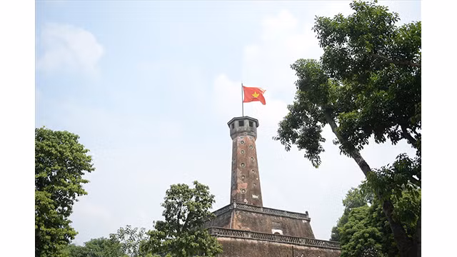 Le drapeau national flotte au vent du soleil d’automne sur les édifices typiques de la capitale de culture millénaire. Photo : Journal Lao Dông.