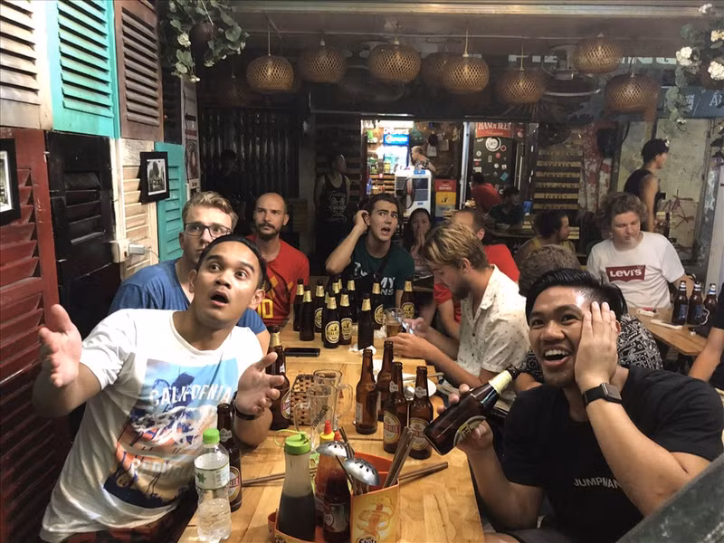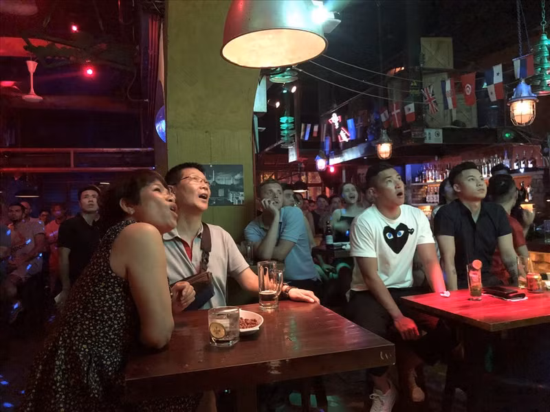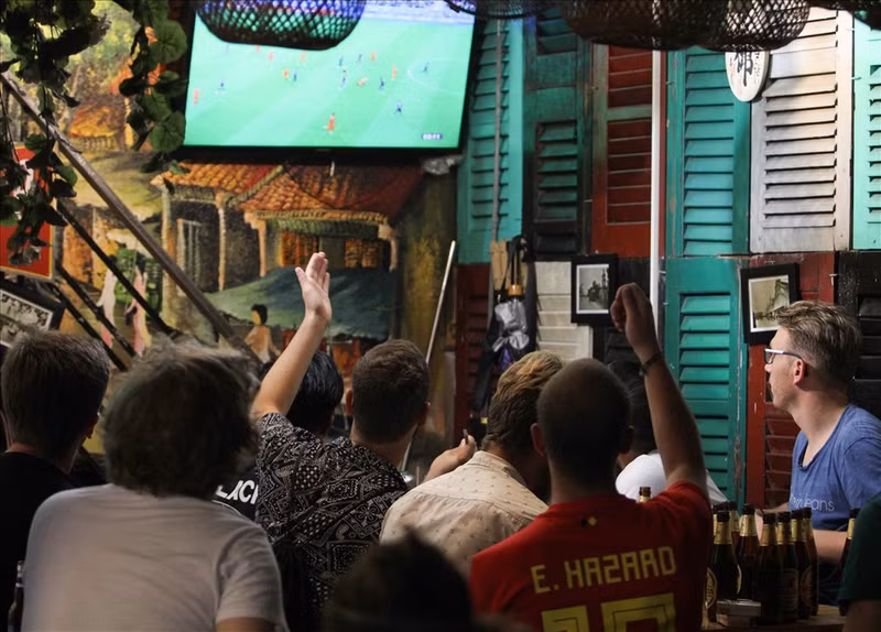 À 1 heure du matin le 11 juillet, dans la rue Ta Hiên, surnommée « la rue des Tây ou rue des Occidentaux », un très grand nombre d’étrangers se sont rassemblés dans les cafés-terrasses équipés de téléviseurs grand écran pour regarder le match de demi-finale opposant les Coqs gaulois aux Diables rouges de Belgique.