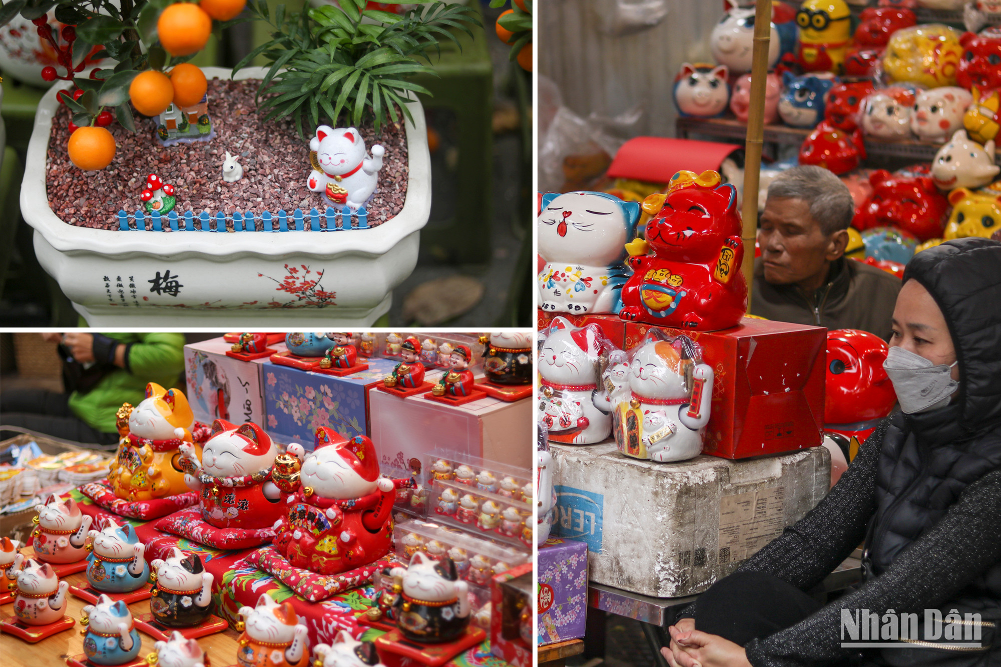 | Selon la tradition, le chat sera le signe du zodiaque pour l’année 2023. Certaines échoppes décorent leurs kumquats avec des chats. |