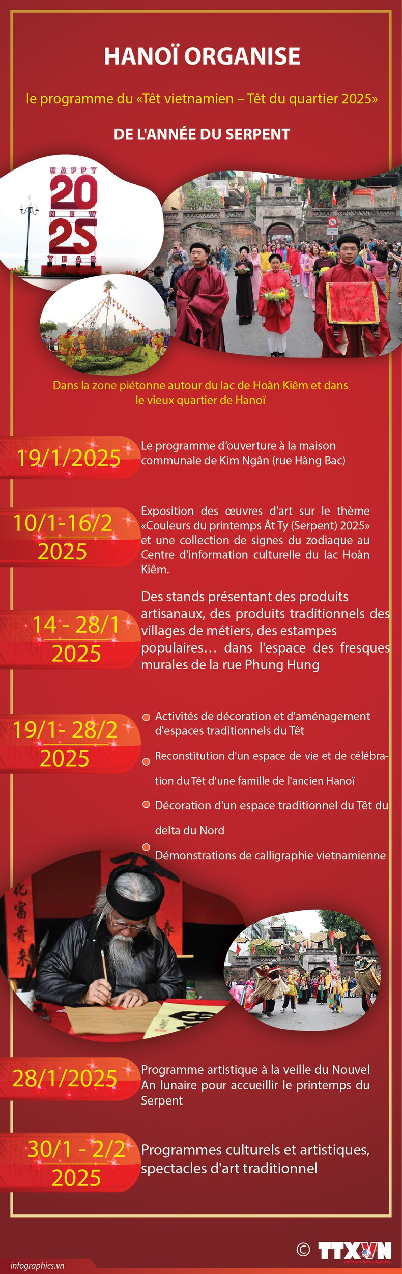 Le vieux quartier de Hanoï, capitale vietnamienne, sera imprégné de couleurs culturelles traditionnelles dans le cadre du programme du « Têt vietnamien – Têt du quartier 2025 » de l'année du Serpent, organisé par le Conseil de gestion du lac Hoan Kiem et du vieux quartier de Hanoï (arrondissement de Hoan Kiem).