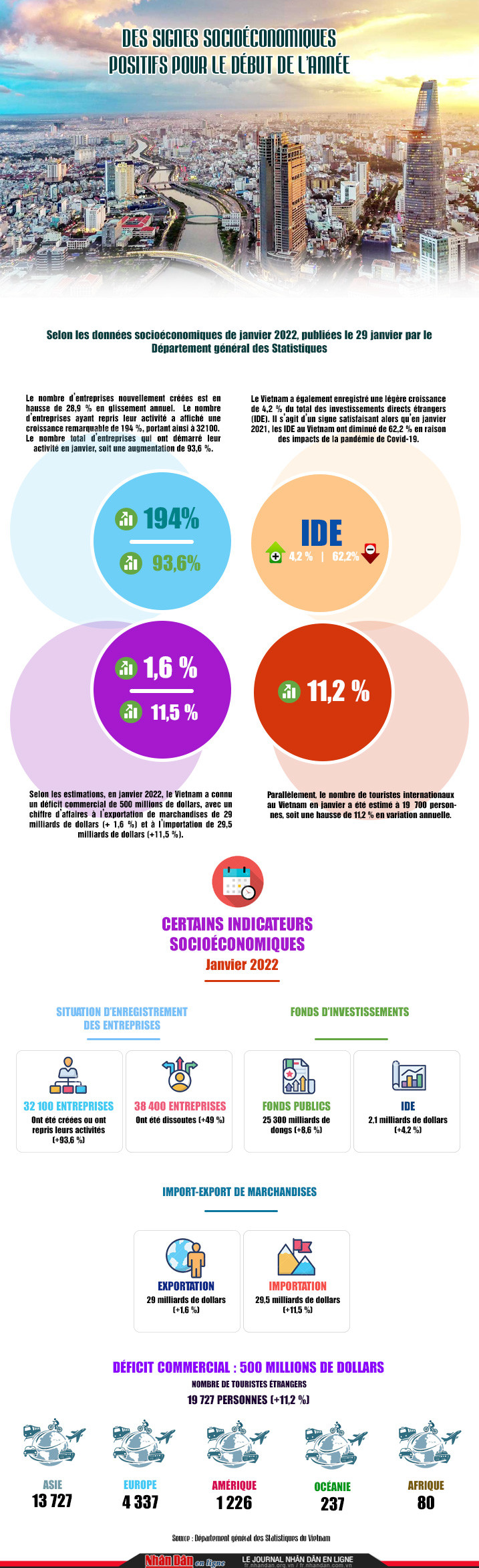 Nhân Dân en ligne - Les signes positifs des indicateurs socioéconomiques en janvier 2022 augurent de bonnes perspectives pour l’économie vietnamienne cette année, malgré l’évolution de l’épidémie.