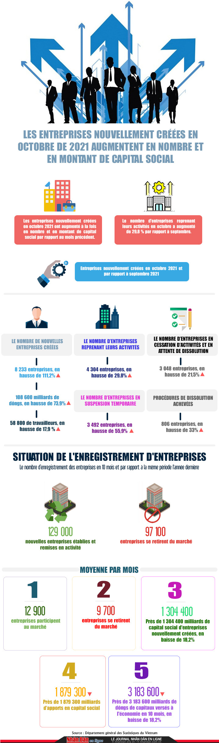 [Infographie] Les entreprises nouvellement créées en octobre de 2021 augmentent en nombre et en montant de capital social