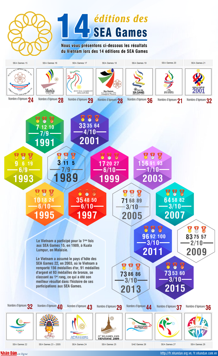 [Infographie] Les résultats du Vietnam lors de ses participations aux 14 éditions des SEA Games