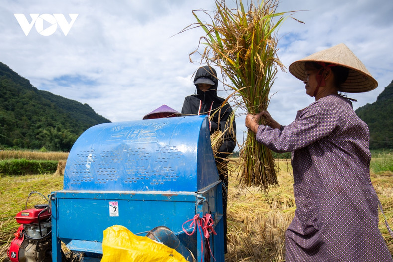 Dans de nombreuses régions, les habitants utilisent principalement des faucilles à main. Cependant, les outils de battage de riz aux pieds ont été remplacés par des batteuses à moteur.
