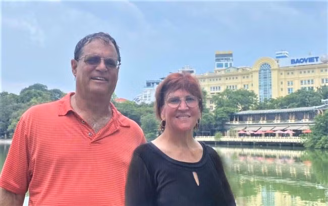 Allen et sa femme lors de leur premier voyage à la capitale du Vietnam. Photo : Châu Anh/NDEL.