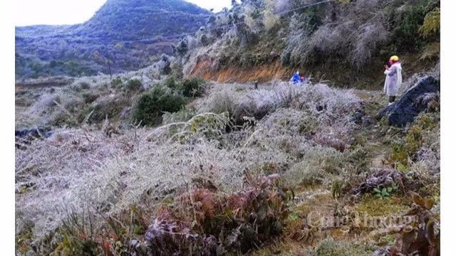 Le matin du 20 février, la température dans les districts montagneux calcaires au Nord du géoparc mondial du plateau calcaire de Dông Van a fortement chuté, provoquant des gelées.