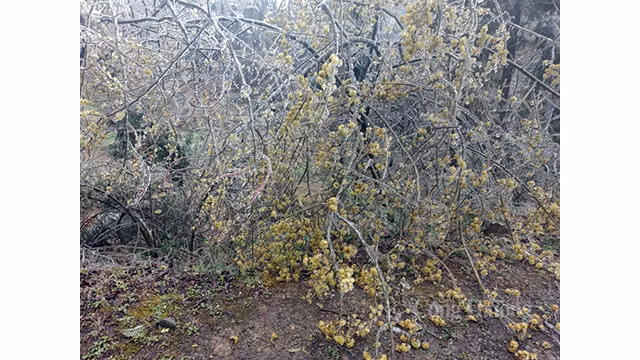 À midi, la température a baissé plus fortement, provoquant ainsi l'apparition de gelées denses dans certaines zones frontalières de la province.