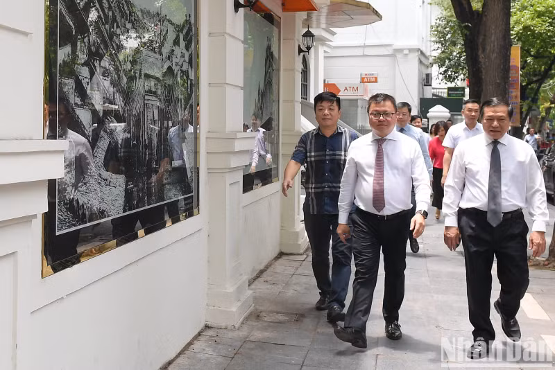 Les délégués ont visité le stand d'exposition situé à l'entrée du journal Nhân Dân et au coin de la rue Bao Khanh.