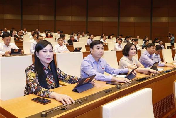 Des députés votent pour adoption de la Résolution sur le budget prévisionnel de l'État de 2024. Photo : VNA.