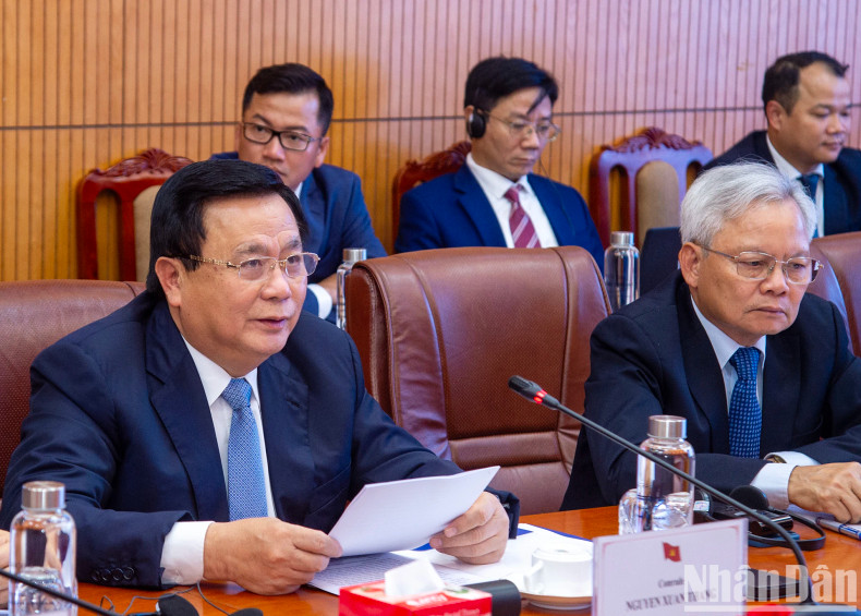 Le membre du Bureau politique, président de l'Académie nationale de politique Ho Chi Minh (HCMA) et président du Conseil théorique central, le professeur Dr. Nguyen Xuan Thang et le secrétaire national du PCF Fabien Roussel ont coprésidé l'événement.