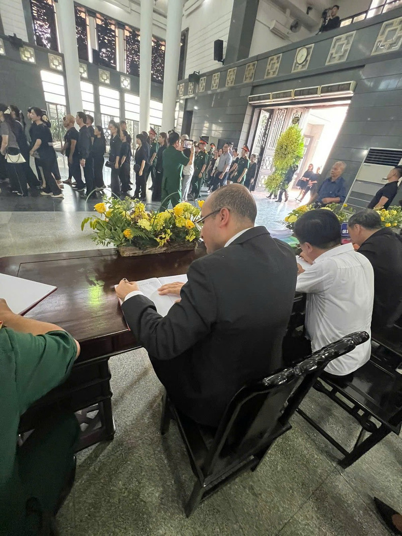 L’ambassadeur d’Algérie au Vietnam, Sofiane Chaib, signe le registre de condoléances en hommage de l’épouse de la professeure associée Dang Bich Hà, épouse du général Vo Nguyên Giap. Photo : ambassade d’Algérie au Vietnam