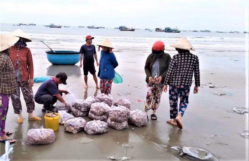 Les pêcheurs vendent des fruits de mer en seaux, barils ou cuvettes, mais les pèsent rarement. En fonction de la quantité de fruits de mer et de leurs types, chaque cuvette a un prix de vente différent (de quelques centaines à environ un million de dongs).