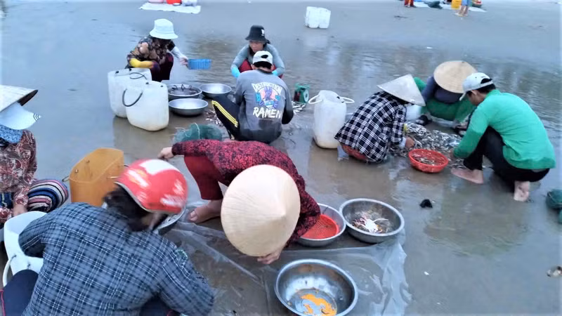 Selon Melle Phuong, une habitante du village de pêcheurs, dans le passé, les gens devaient souvent apporter des fruits de mer aux marchés de gros ou dans les zones accueillant un grand nombre de touristes pour les vendre. Mais ces dernières années, de nombreux touristes viennent au village, la plupart des fruits de mer sont donc vendus sur place.