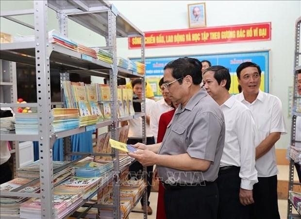 Le Premier ministre Pham Minh Chinh inspecte les installations de l'école primaire du bourg de Yên Lâp. Photo : VNA.