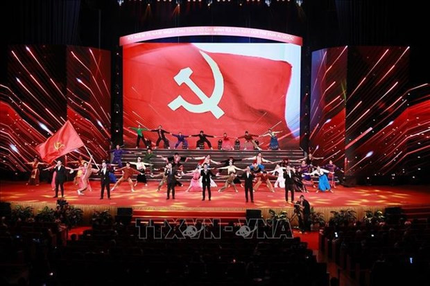 Un spectacle lors de la conférence de honorer les personnes exemplaires du pays. Photo : VNA