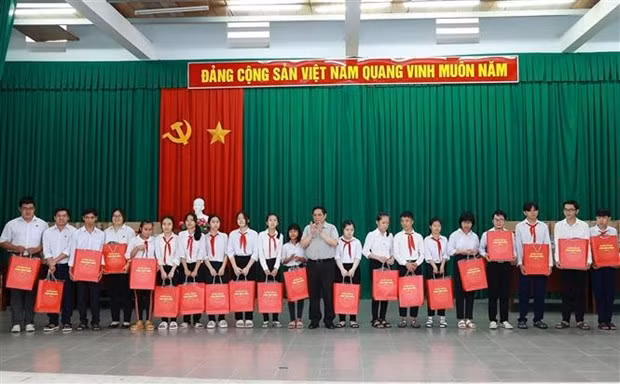 Dans le cadre de la visite, le 15 février, le chef du gouvernement a visité et remis des cadeaux aux familles bénéficiaires des politiques sociales et aux enfants handicapés à Bên Tre, et a inspecté certains grands projets d’infrastructure dans la localité.