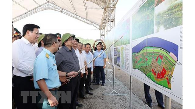 Le PM sur le chantier du projet de construction de l’aéroport de Sa Pa. Photo: VNA