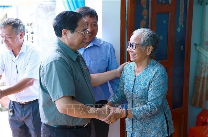 Le Premier ministre Pham Minh Chinh rend visite à la famille du martyr Nguyên Dinh Hoa dans l’arrondissement de Thôt Nôt. Photo: VNA