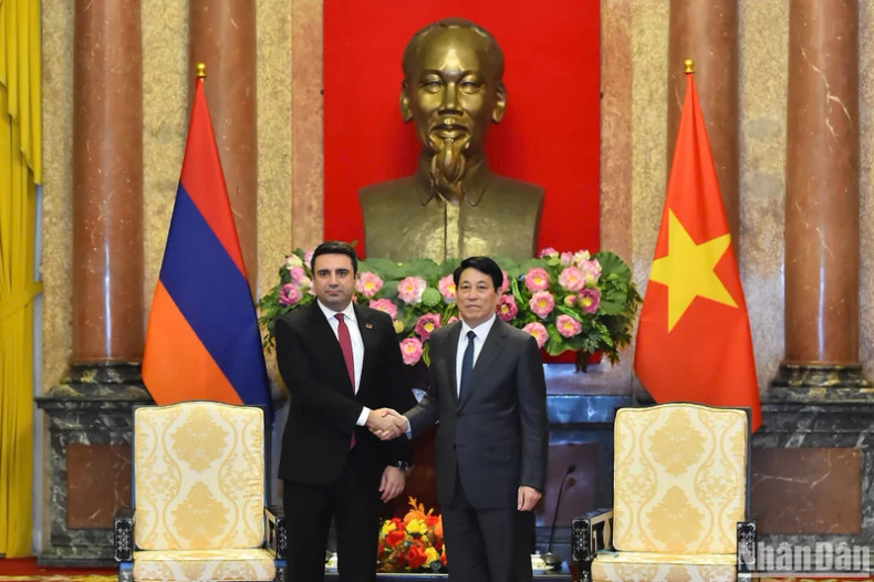 Exprimant sa satisfaction du bon développement des relations entre les deux pays dans tous les domaines et dans les forums multilatéraux, le président Luong Cuong a affirmé que le Vietnam appréciait toujours l'amitié traditionnelle et la coopération multiforme avec l'Arménie.