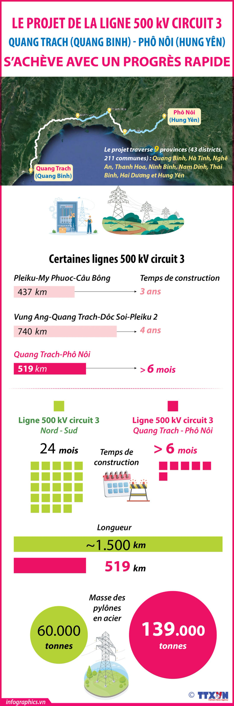 La ligne 500kV circuit 3 Quang Trach – Phô Nôi représente un projet d'envergure exceptionnelle, valorisant les ressources de l'ensemble du système politique. Avec un énorme volume de construction, ce projet s'est achevé dans des délais rapides, créant un miracle de l'industrie électrique.