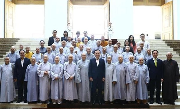 Au nom de la délégation bouddhiste, la bonzesse supérieure Thich Nu Nhat Khuong a informé le Vice-Premier ministre du processus de développement et des activités clés des bonzesses.