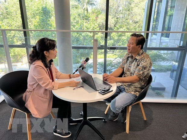Le docteur Nguyên Hông Hai, conférencier invité à l'École de droit de l'Université de technologie du Queensland en Australie, accorde une interview à l'Agence vietnamienne d'Information. Photo : VNA.