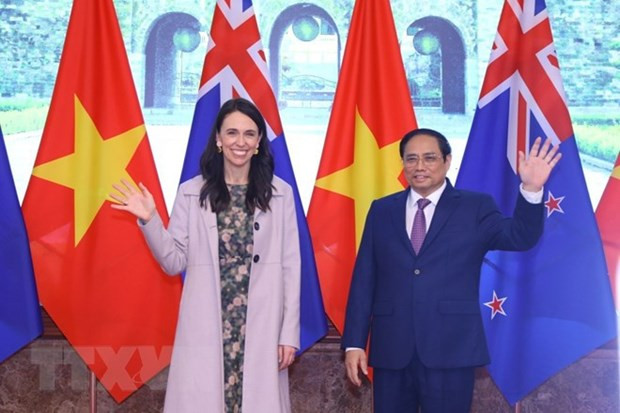 Les Premiers ministres Pham Minh Chinh et Jacinda Ardern. Photo: VNA