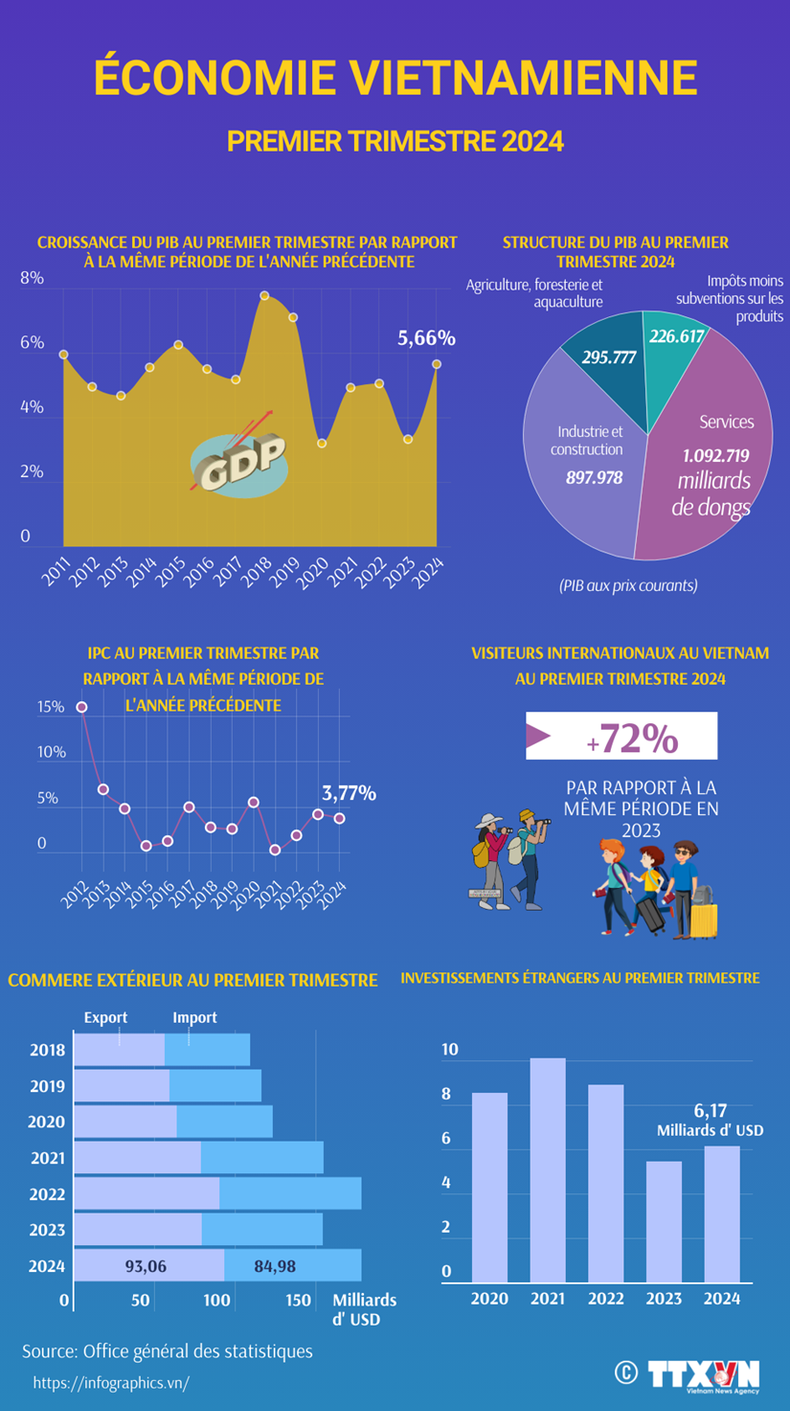 Selon les données publiées par l'Office général des statistiques, l'économie nationale s'est fortement redressée au premier trimestre 2024. Le taux de croissance du PIB a atteint un niveau supérieur à celui de la même période entre 2020 et 2023. Le nombre d'arrivées touristiques a fortement augmenté et le pays a affiché un excédent commercial impressionnant. .