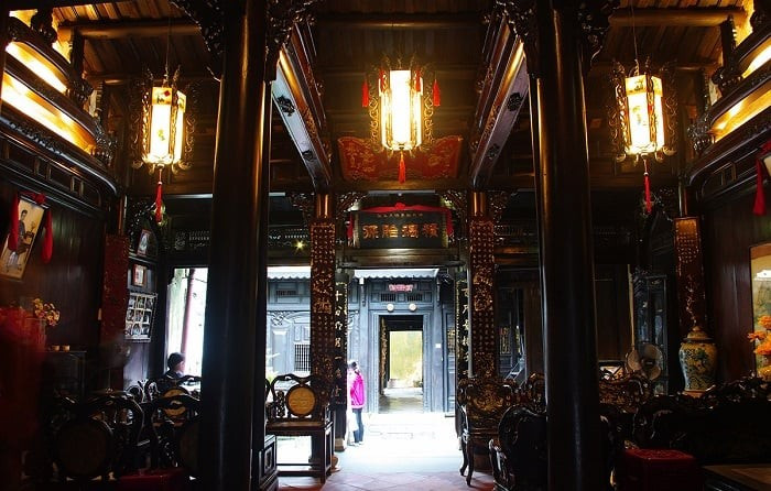 Cette maison de 250 ans impressionne par son élégance : menuiserie sophistiquée, colonnes et poutres travaillées, plancher en briques de Bat Trang, toit en tuiles yin-yang, grand lit en sindora et argenterie. Elle plonge les visiteurs dans une atmosphère intime et parfumée par le passé.