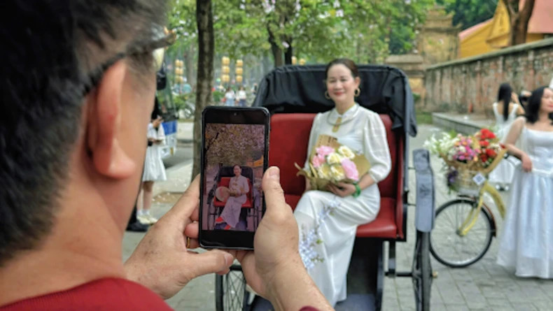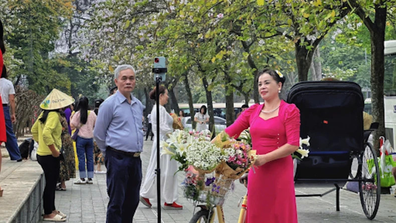 Des bicyclettes ornées de fleurs sont proposées à 10 000 dôngs par personne, tandis que des séances photo à bord d’un xích lô décoré reviennent à environ 20 000 dôngs.