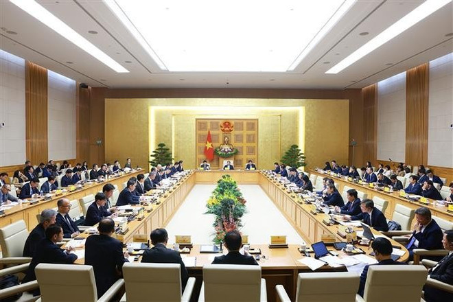 Le Premier ministre Pham Minh Chinh a présidé le 1er mars à Hanoï un échange de vue avec des entreprises japonaises. Photo : VNA.