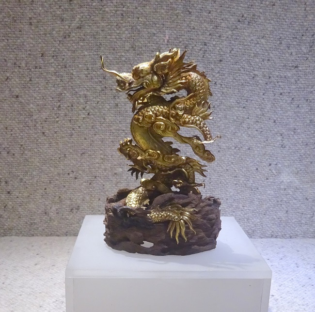 Statue de dragon en or, bois, en 2è année de règne de Thiêu Tri (1842). Collection d’objets royals de la dynastie des Nguyên. Photo : DH/NDEL.