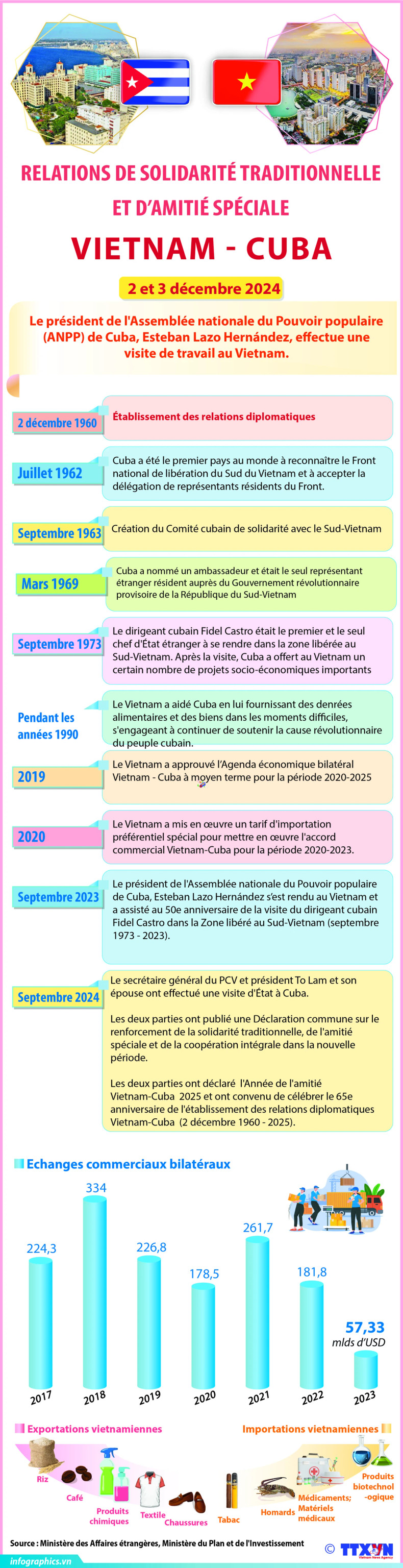 Le Vietnam est actuellement le deuxième partenaire commercial asiatique et le plus grand investisseur étranger de la région asiatique à Cuba.