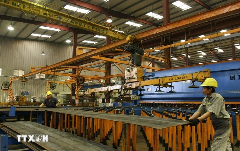 Production d'acier de construction chez la compagnie Zamil Steel Vietnam. Photo : VNA.
