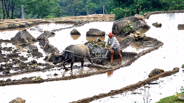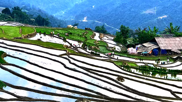 La beauté magique des rizières en terrasse dès que les premières pluies d’été tombent. Photo : NDEL