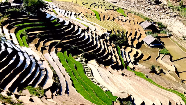 Les rizières en terrasse remplies d’eau. Photo : NDEL