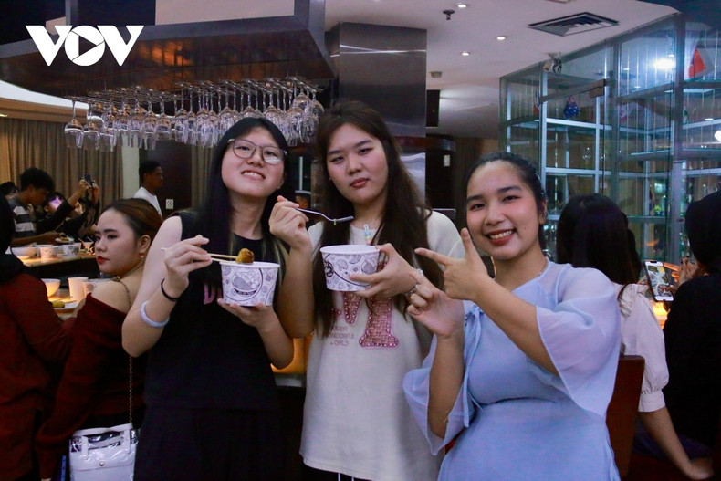 Ho Bao Ngoc (à l'extrême droite) présente le Pho vietnamien à des étudiants internationaux.