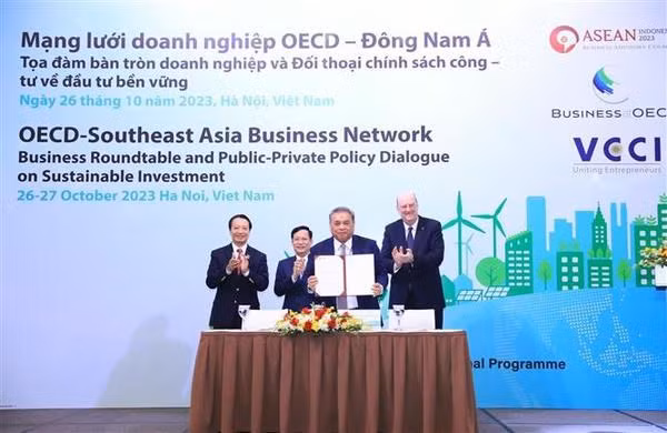 Pham Tan Cong, président de la Chambre d'Industrie et du Commerce du Vietnam (VCCI), a souligné que cet événement constituait une occasion importante pour les décideurs politiques et les dirigeants d'entreprises de l'OCDE et d'Asie du Sud-Est d'échanger leurs points de vue, d'identifier les tendances et les opportunités de coopération en matière d'investissement durable, et de chercher à harmoniser les objectifs de croissance et de rentabilité avec ceux de la réduction des impacts des changements climatiques et de la protection des ressources naturelles.