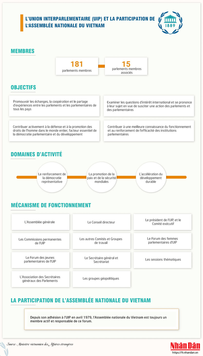 Depuis son adhésion à l’Union interparlementaire (UIP) l’UIP en avril 1979, l’Assemblée nationale (AN) du Vietnam est toujours un membre actif et responsable de ce forum.