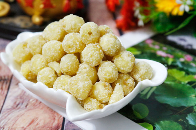 Les fameuses graines de lotus confitesde couleur crème sont une confiserie délicieuse.
